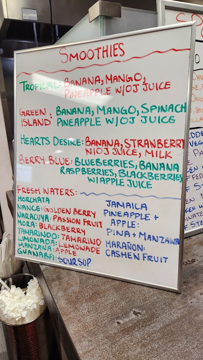 Horchata, pineapple, melon, watermelon, lemonade, hibiscus, passion fruit.